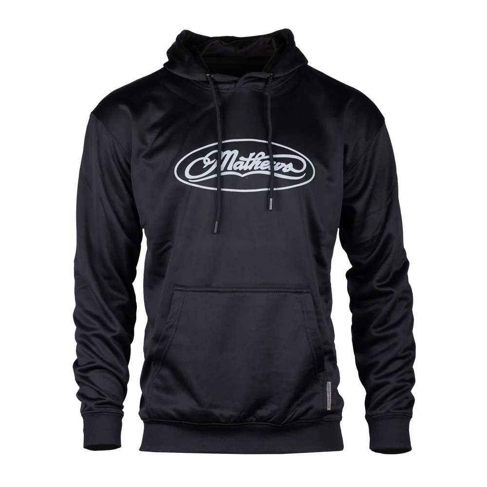 The Performance Hoodie is made from a lightweight 95% polyester / 5% spandex blend, 6.2oz. Recommended to machine wash cold, tumble dry on low. Fit is true to size. Also available in stores, check your local Authorized Mathews Retailer for availability. Available in sizes S-2XL.